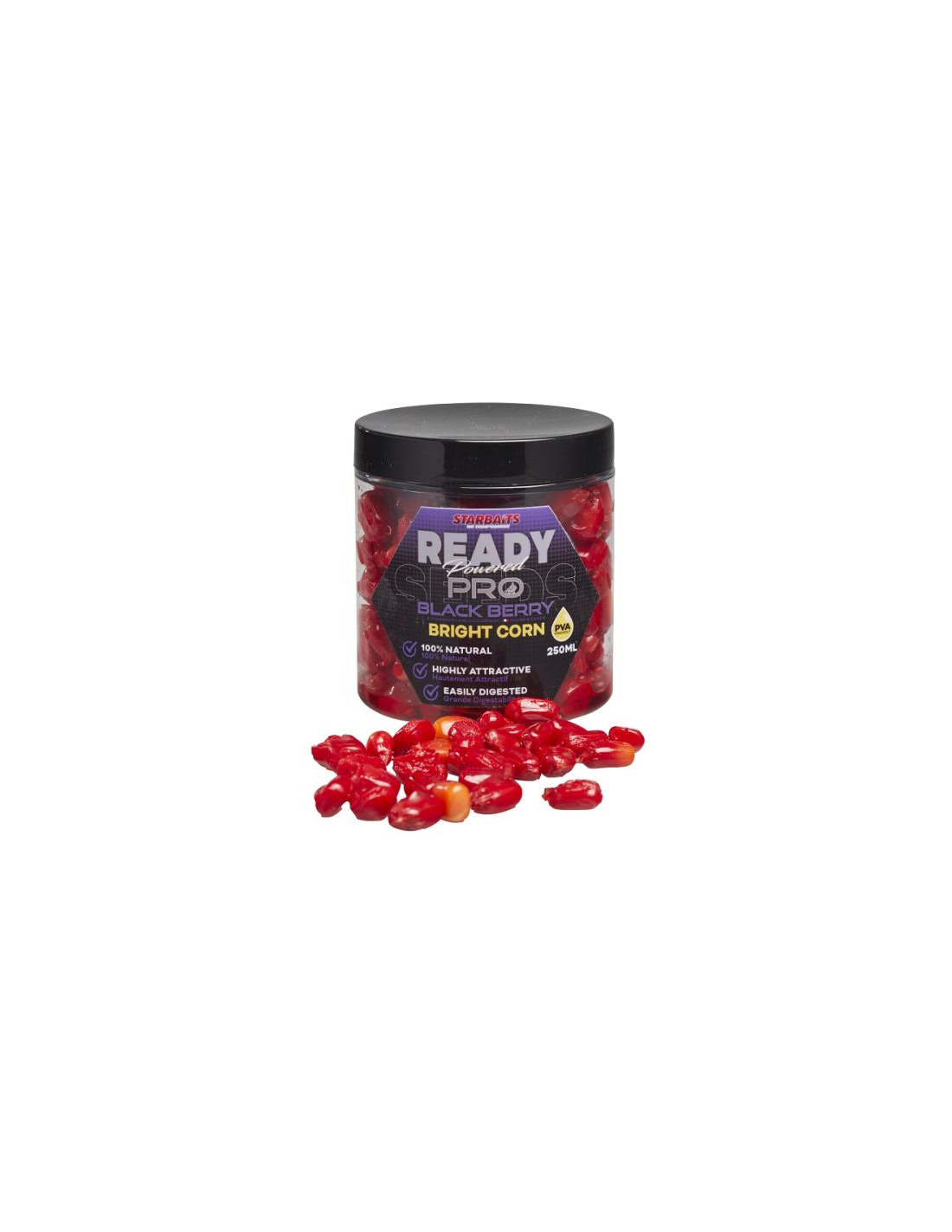 Предварително приготвена царевица за стръв, с наситен аромат и искрящ флуоресцентен цвят.